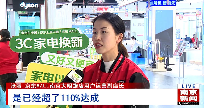 京东MALL南京大明路店用户运营副店长张丽表示:“我们门店从今年1月份到10月份,累计10个月的销售总规模,已经超额完成了既定的全年销售规模,超110%达成,整个销售规模超预期。其中,手机、3C类的销售占比大概33%,其他家电大概占到67%。”