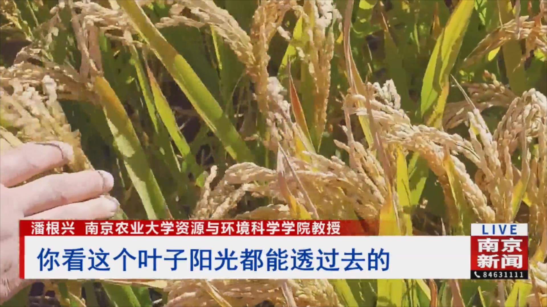 南京农业大学资源与环境科学学院教授潘根兴对记者说道:“我在这5年了,这里的稻田从来没倒过。你看这个穗是直挺的,这个叶子阳光都能透过去的,这样就不容易生病。因为这样,它接受阳光的很多,所以它这个籽粒是饱满的,也就是说它蛋白质含量比较高。”