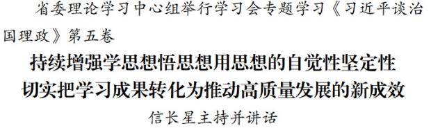 交汇点讯 10月10日,省委理论学习中心组举行学习会,专题学习《习近平谈治国理政》第五卷。省委书记信长星主持学习会并讲话。省委常委作了交流发言。