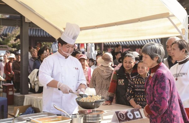活动当天,古韵十足的萃园中既藏着江南园林的雅致,又盈满了市井烟火的热闹。入园处,城市IP“常宝”热情迎客,不少市民主动上前合影;园内,美食香气与非遗韵味交织,引人驻足探寻。春江楼前,锣鼓“咚锵”作响,阳湖拳刚劲亮相,万绥猴戏灵动登场,围观的市民、游客看得投入,叫好声与掌声此起彼伏。石园区域,常州老字号、非遗、图书、文创、“文明有你 周周有约”文明集市等近30家特色摊位齐聚。常州萝卜干炒饭、天目湖砂锅鱼头、德泰恒特色点心等美食免费派送摊位前早早排起了长队,不少摊主准备了“打卡”好礼与优惠福利,吸引市民现场选购。“既能尝美食又能得福利,在家门口就能逛到这么多老字号,真是个收获满满的周末!”带着家人逛集市的市民刘女士笑着说。