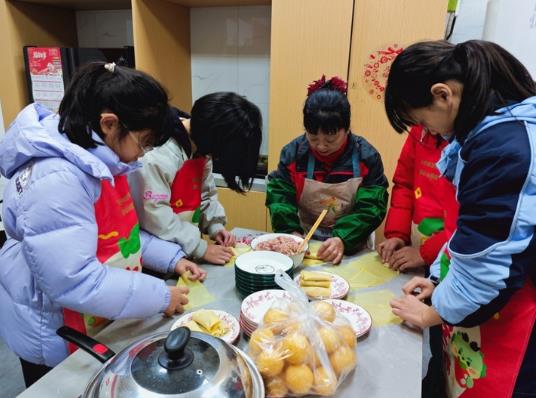 洗菜、切配、拌馅、煎炒……小小的厨房里香气弥漫。张嘉靓格外认真,她的母亲是安徽人,父亲在无锡打工。黄天航学得格外认真,手指被肉馅沾得黏糊糊也不在意:“我要给妈妈做最好吃的肉塞面筋,她平时太累了。”