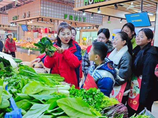 在志愿者的带领下,孩子们被分成小组,挎上小菜篮,走进热闹的市场采购食材,并学习蔬菜价格计算方法。“阿姨,我要两斤夹心肉,做肉塞面筋用!”黄天航学着妈妈的样子讨价还价,肉铺摊主笑着给了他一块新鲜的肉;张嘉靓在蔬菜摊前认真挑选菠菜和豆芽,“老师说这是如意菜,吃了事事如意”。胡琦瑛说,为了让孩子们学得地道,市场特意协调商户提供新鲜食材,“这些年菜都是无锡人年夜饭的必备菜,既能让孩子体验劳动,又能感受本地年味”。