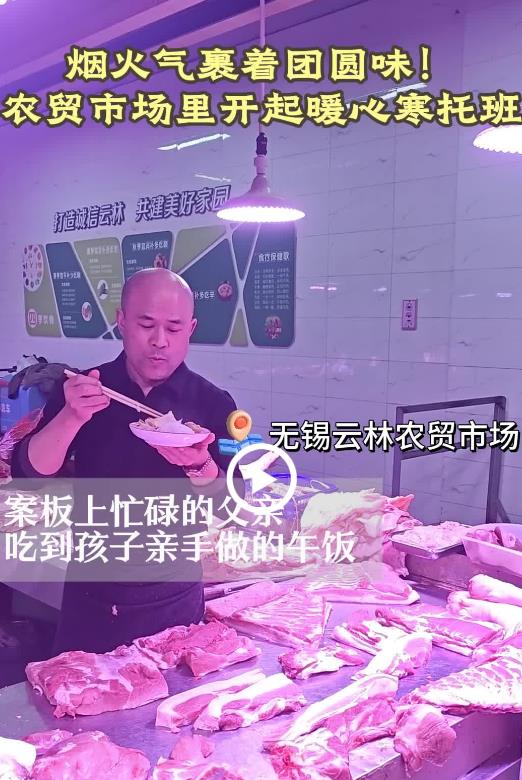 当天,是云林农贸市场寒托班正式开班的日子。这个由无锡云林街道团工委牵头,在菜市场里开辟出的特殊课堂,让凌晨四五点就要起身忙碌的商户们,终于能安心地把孩子“寄存”在充满年味与人情味的市井烟火里。