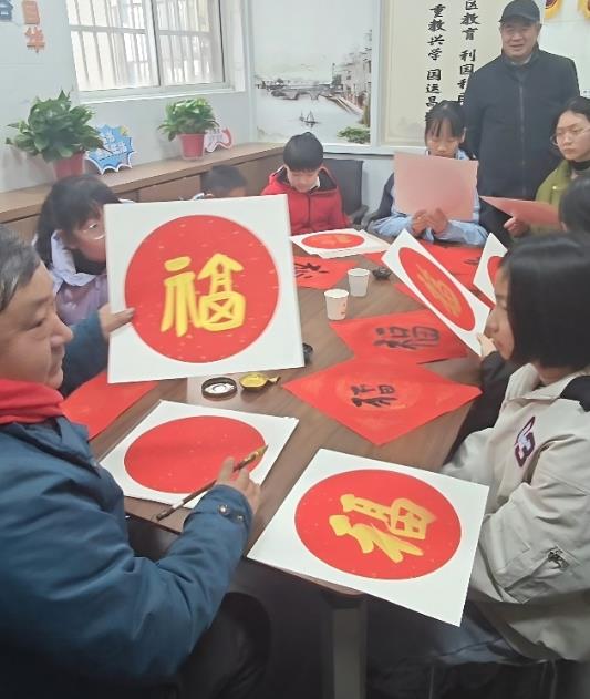 上午9点,寒托班的第一堂课正式开讲,云林街道团工委副书记朱力涛早早便带着红纸和毛笔来到了课堂。“同学们,你们知道‘福’字为什么要倒着贴吗?”问题一出,孩子们争先恐后地举手。