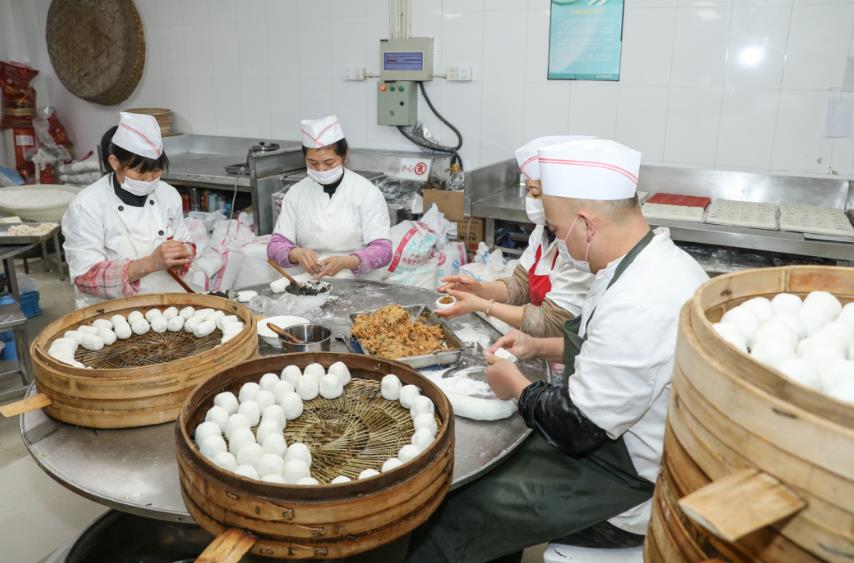 2月4日清晨6时,天刚蒙蒙亮,常州糕团店的后厨已是一片忙碌景象。揉面、包馅、蒸制、打包,几十位点心师傅分工协作,动作娴熟利落。