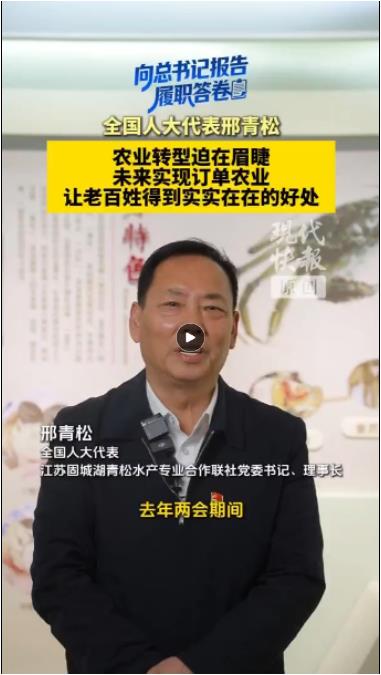 “新农人”也是邢青松履职期间的关键词,近年来江苏固城湖青松水产专业合作联社吸引了不少年轻力量。“未来是孩子和年轻人的天下,我认为大学生的思想比较灵活,他们爱干爱思考,所以我们一定要给年轻人更多的平台发挥,比如我们有好多大学生,在做直播电商、机器人运行等。”
