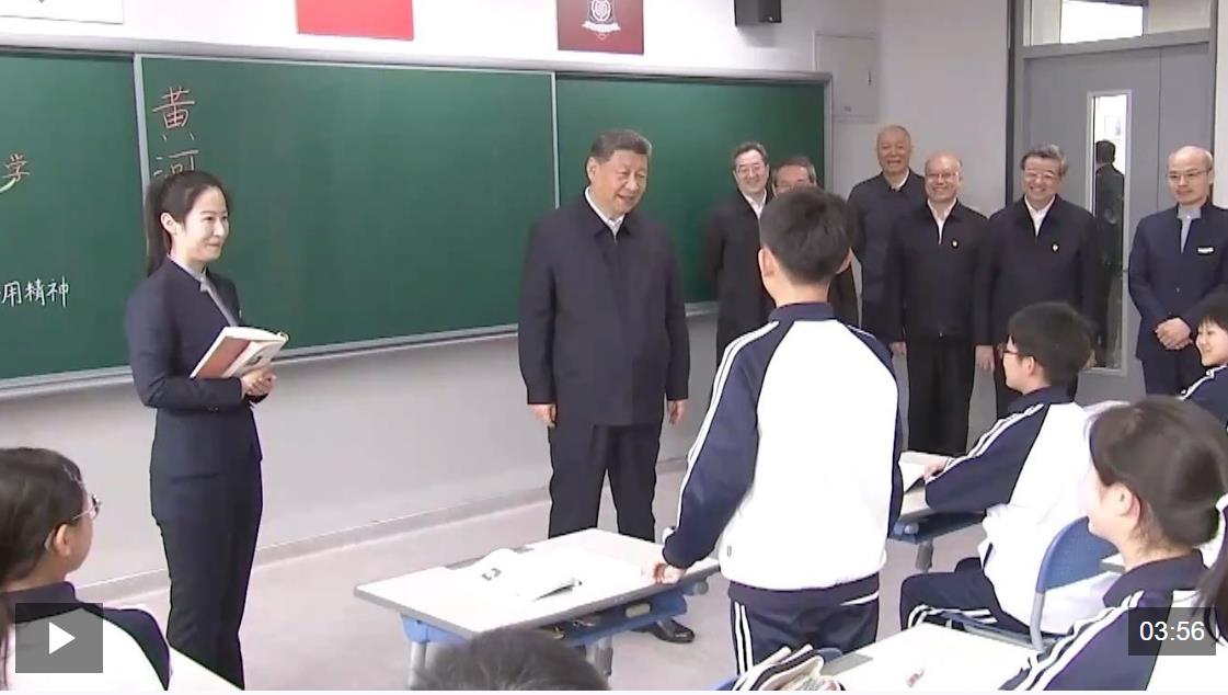 初一(2)班,一堂语文课正在进行中。习近平总书记走进这间教室,同师生交谈,了解教学情况。