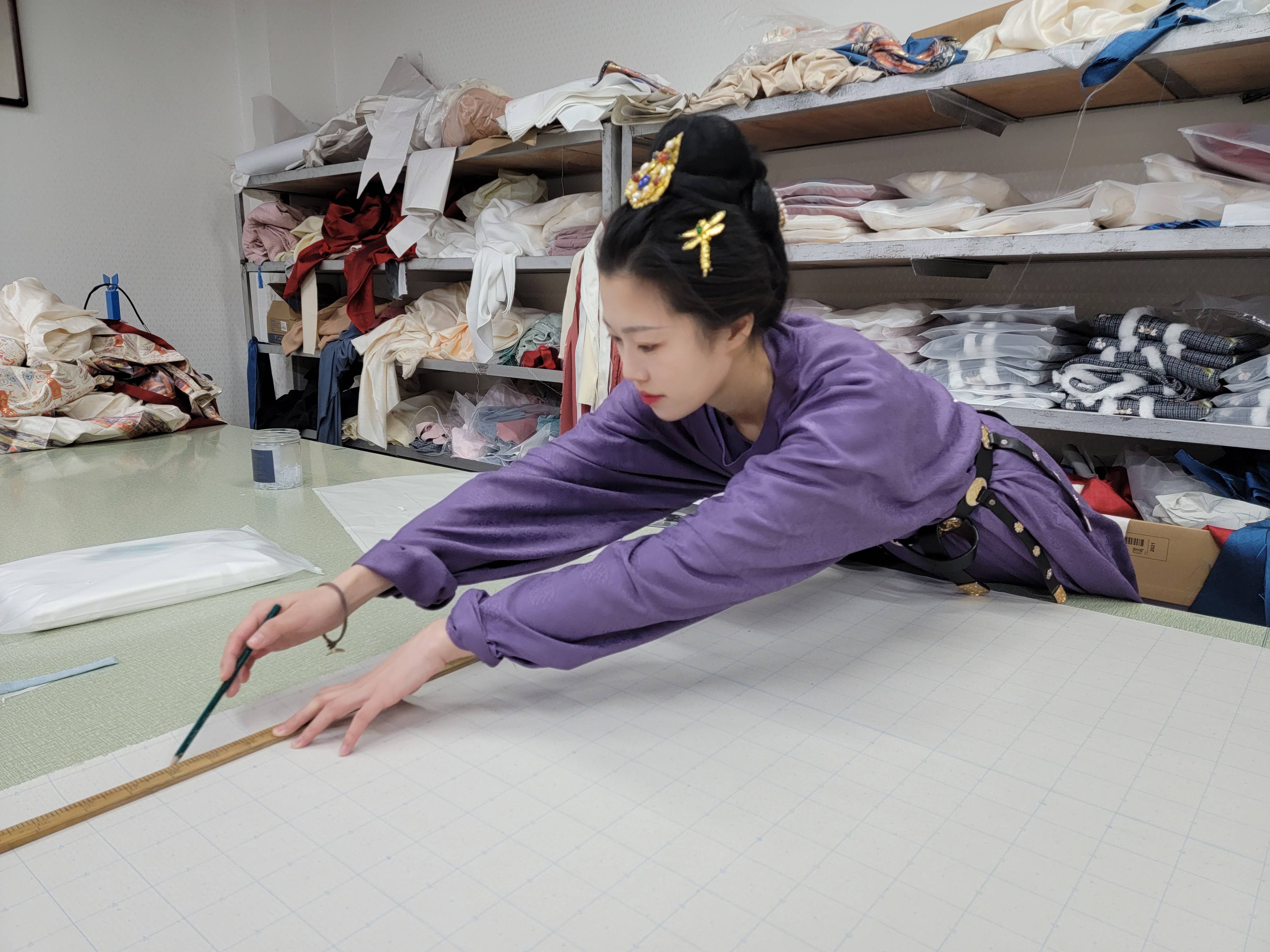 90后的刘婷从汉服爱好者转型为汉服从业者已有多年。“把爱好当成事业,应该是这个世界上最幸福的事了。”她告诉记者,家中长辈做唐装、旗袍定制,她从小耳濡目染学会了剪裁制作。接触汉服后,她便迷上了自己做汉服。