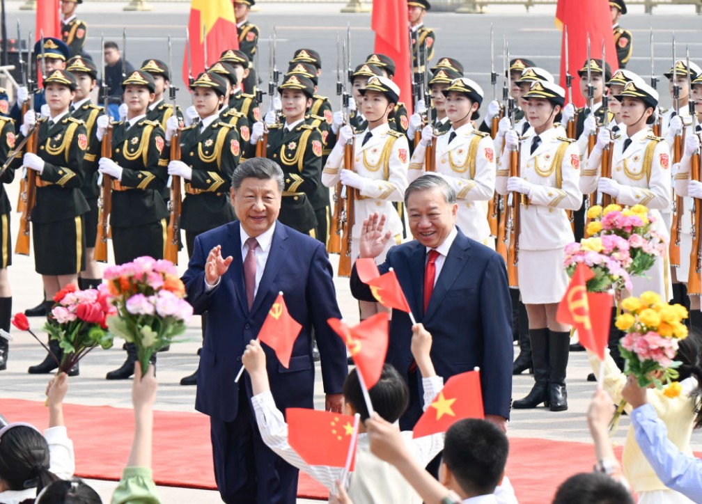 苏林表示,这是我当选越南国家主席后首次出访,也正值习近平总书记、国家主席去年对越进行历史性访问一周年,充分反映了总书记同志所说的“邻里越走越亲”。越方感谢中国共产党、政府和人民对越共十四大提供的重要政治支持,愿始终同中方赓续传统友谊,推动两国全面战略合作伙伴关系和具有战略意义的命运共同体不断发展。越方祝贺中国胜利完成“十四五”规划并取得历史性成就,相信中方将顺利实施“十五五”规划,不断推进高质量发展和社会主义现代化建设,如期实现第二个百年奋斗目标,并成为世界和平发展的支柱力量和首要动力。