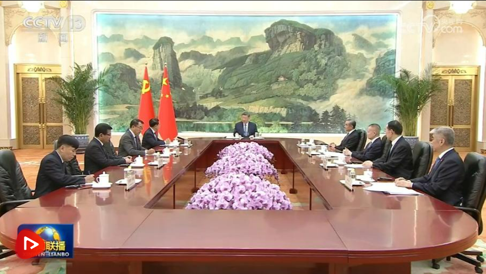 4月21日下午,中共中央总书记、国家主席习近平在人民大会堂会见作为老挝人民革命党中央总书记、国家主席通伦特使专程来访的老挝人革党中央政治局委员、常务副总理沙伦赛。