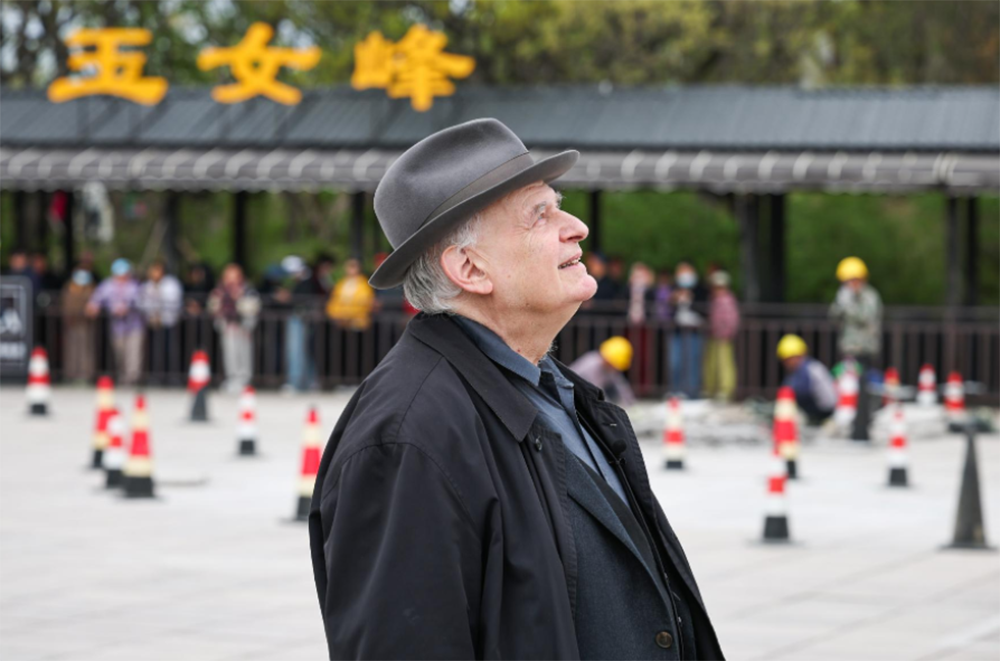 “像是书里的画面跳到了现实!”4月21日清晨,花果山云雾缭绕,玉女峰若隐若现。洛朗身着休闲装,戴着巴拿马礼帽,步履轻快地踏上这片让他魂牵梦绕的土地——这位时年已经76岁的艺术大师,在16岁时,收到了哥哥送的一本法文版《西游记》,从此与东方神话结下不解之缘。站在吴承恩的雕塑前,他抬头凝望这位明代作家的面部轮廓,忍不住掏出手机拍照,“他是一位伟大的作家。”