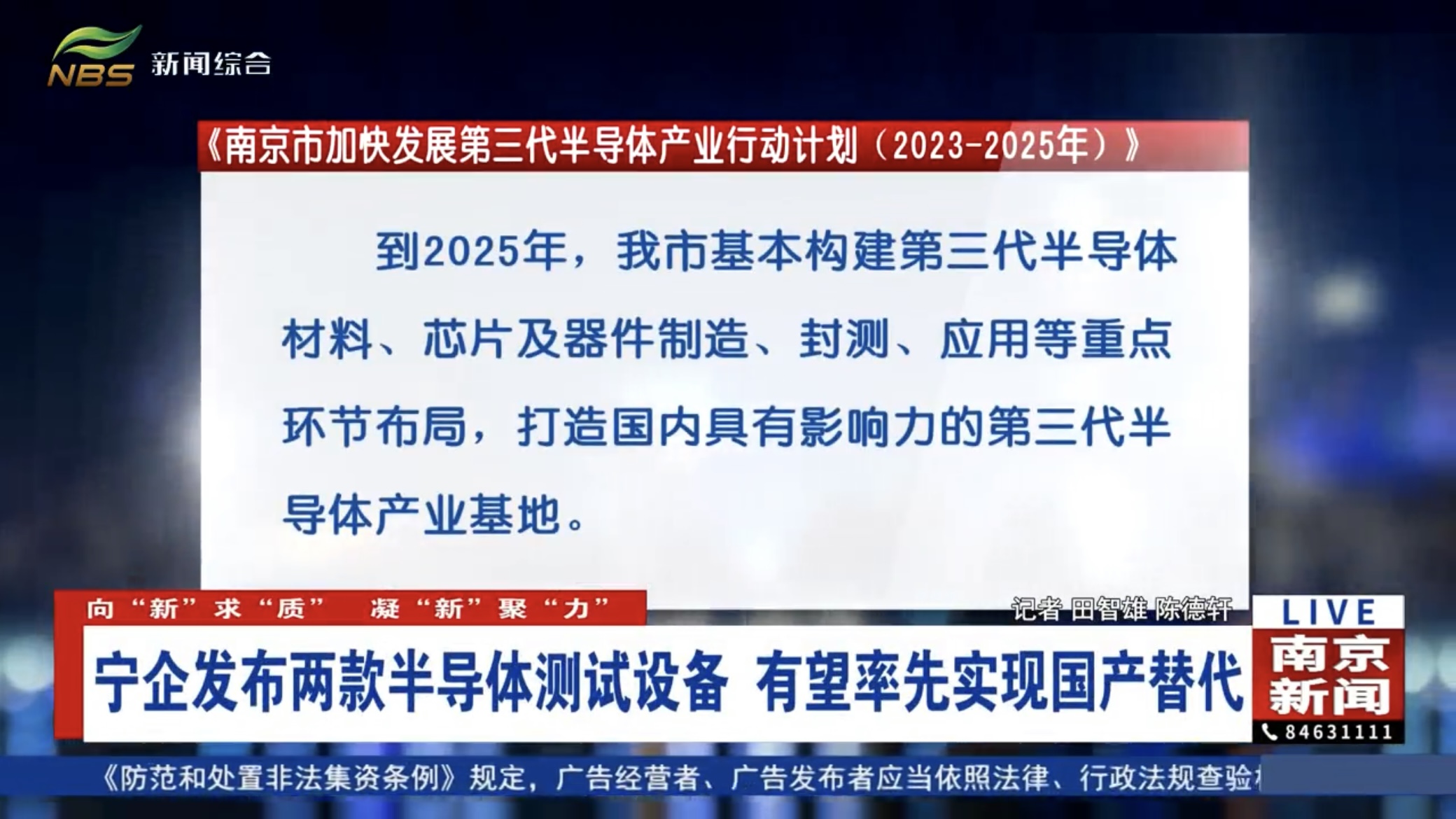 第三代半导体是南京“4266”产业体系中着力抢占的未来产业新赛道之一。去年发布的《南京市加快发展第三代半导体产业行动计划(2023-2025年)》提出:到2025年,我市基本构建第三代半导体材料、芯片及器件制造、封测、应用等重点环节布局,打造国内具有影响力的第三代半导体产业基地。企业负责人表示,有力的政策支持和配套产业链企业的集聚,让他们对南京集成电路和半导体产业的发展充满信心。