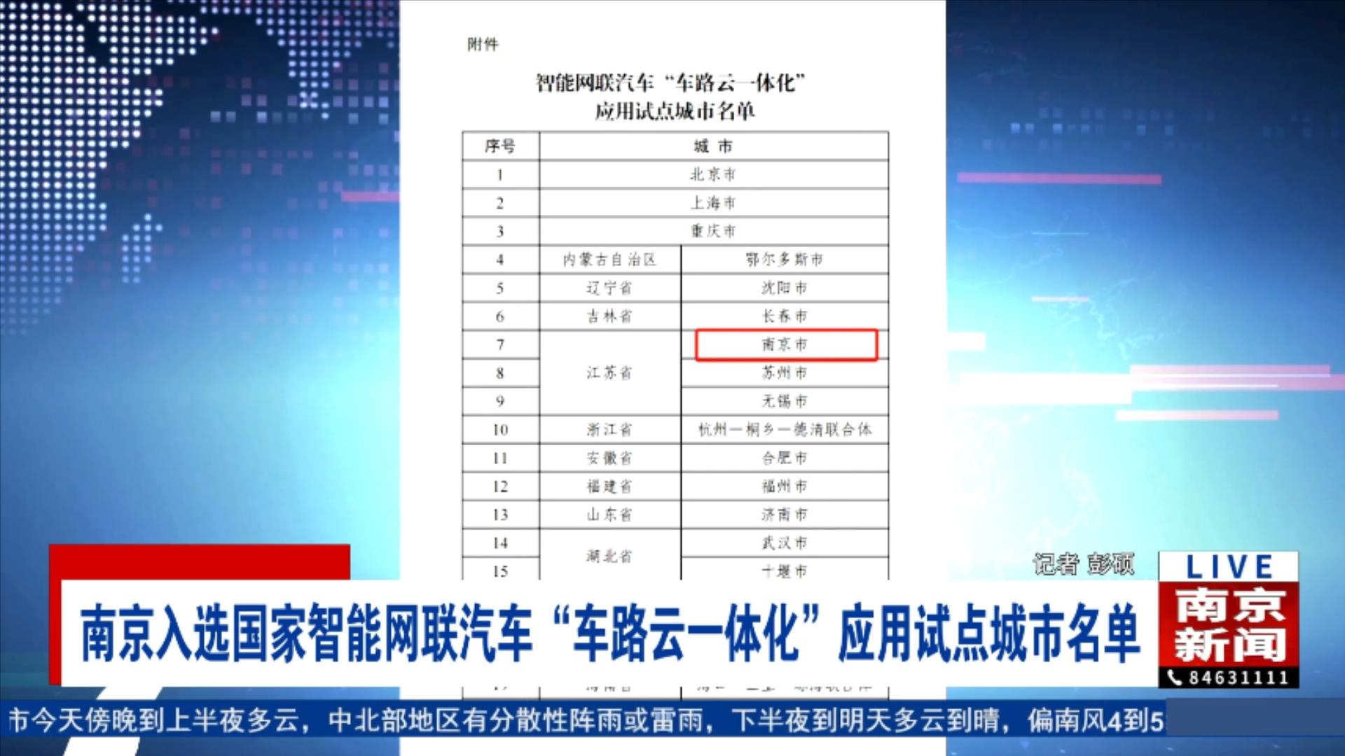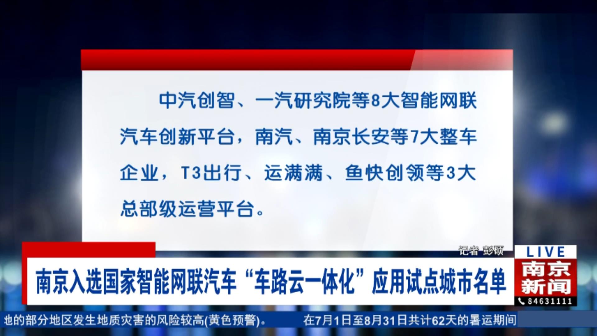 近日,工信部等5部门正式发布《关于公布智能网联汽车“车路云一体化”应用试点城市名单的通知》,确定20个城市为智能网联汽车“车路云一体化”应用试点城市,南京成功入选。
