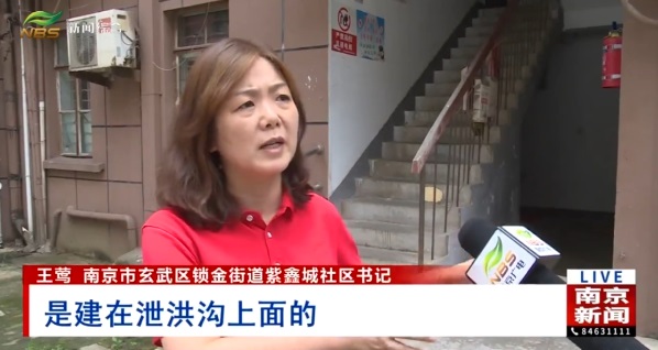 南京市玄武区锁金街道紫鑫城社区书记王莺介绍道:“22栋是建在泄洪沟上面的房子,并且靠着紫金山,当紫金山的水流淌不及、泄洪沟堵塞的情况下,这栋房子就容易被淹。”