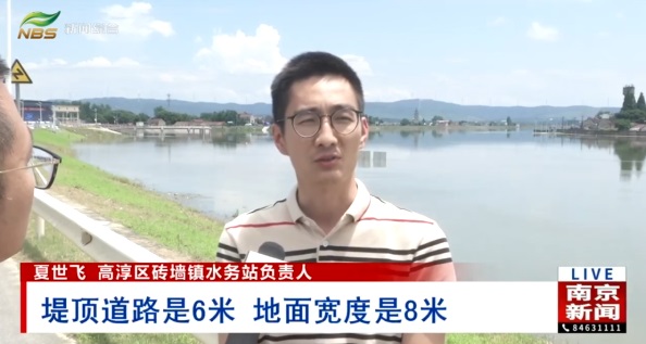 高淳区砖墙镇水务站负责人夏世飞介绍道:“水阳江流域是按照防洪四十年一遇的标准来设计的,堤顶道路是6米,地面宽度是8米。”