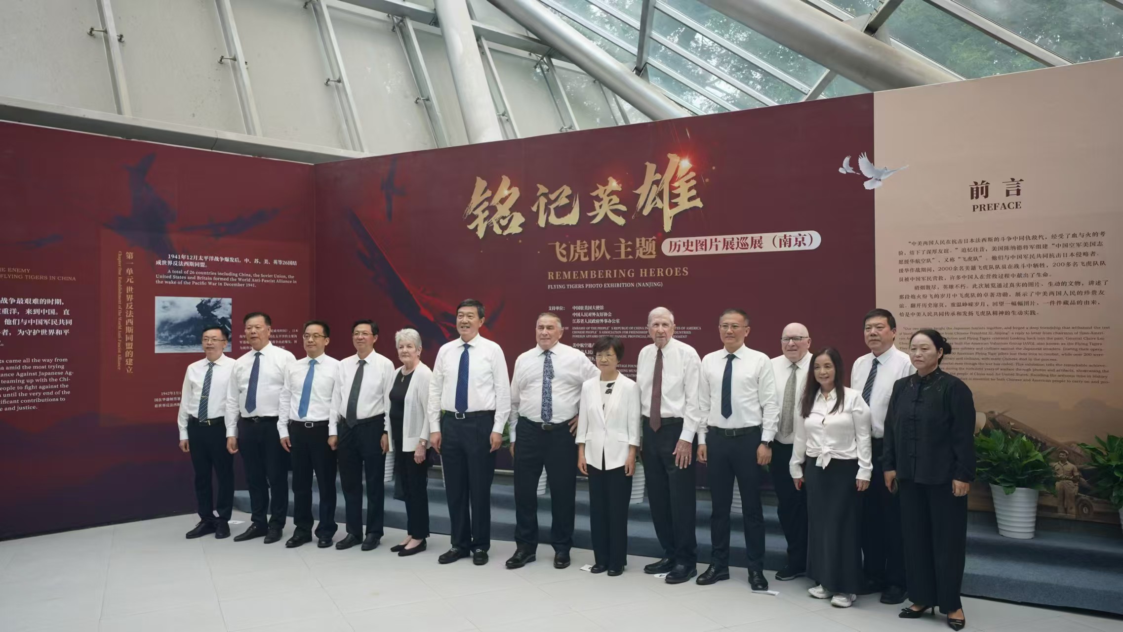 在中国人民抗日战争最为艰难的相持阶段,由美国志愿者组成的飞虎队奔赴中国战场,与中国军民共同抗击日本侵略者,直至1945年取得战争最终胜利,为守护世界和平与正义作出重要贡献。在与中国军民并肩对日作战的过程中,2000余名美籍飞虎队队员献出了宝贵的生命。