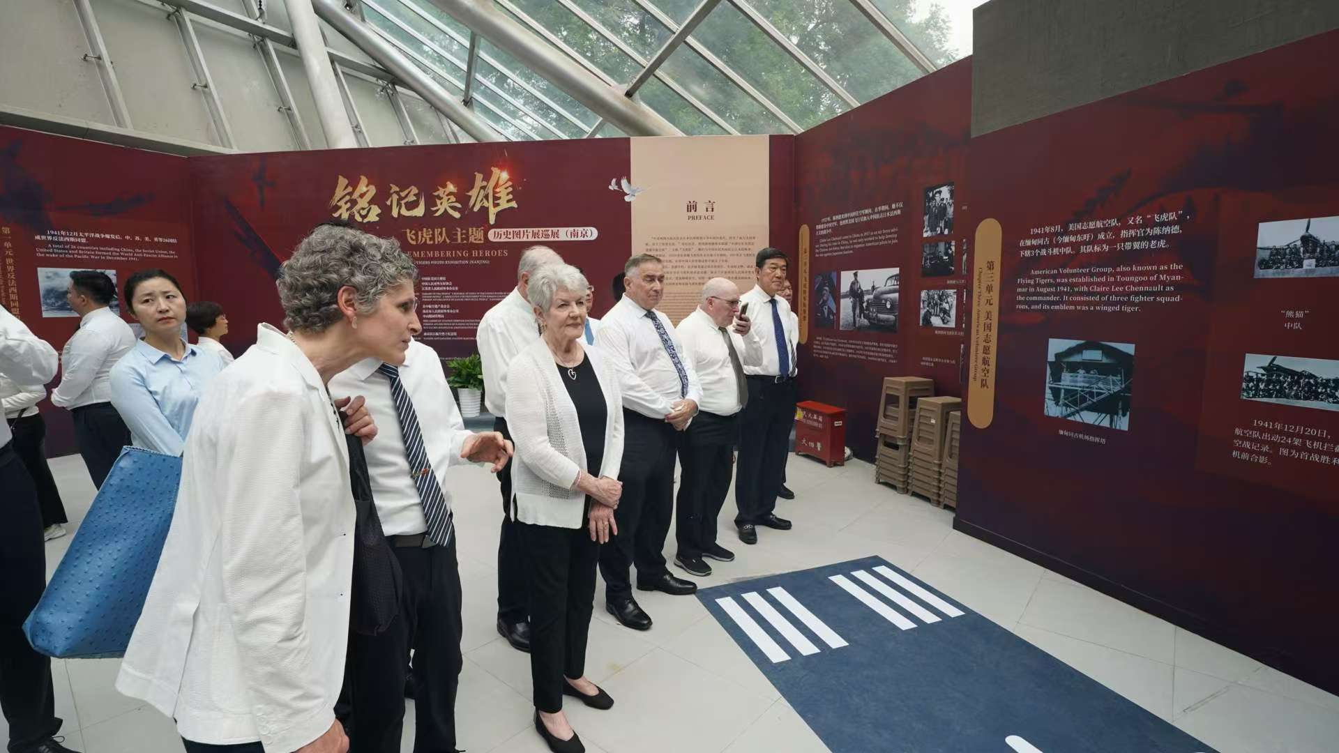 《铭记英雄——飞虎队主题历史图片展巡展(南京)》是南京抗日航空烈士纪念馆与美国民间友好团体合作举办的首个展览,展览共分为五部分,共展出近180张珍贵历史图片,包括美中航空遗产基金会提供的近110张图片以及南京抗日航空烈士纪念馆提供的近70张图片,部分图片为首次展出,集中展示了近年来南京抗日航空烈士纪念馆有关美国援华航空文物史料的最新征集研究成果。