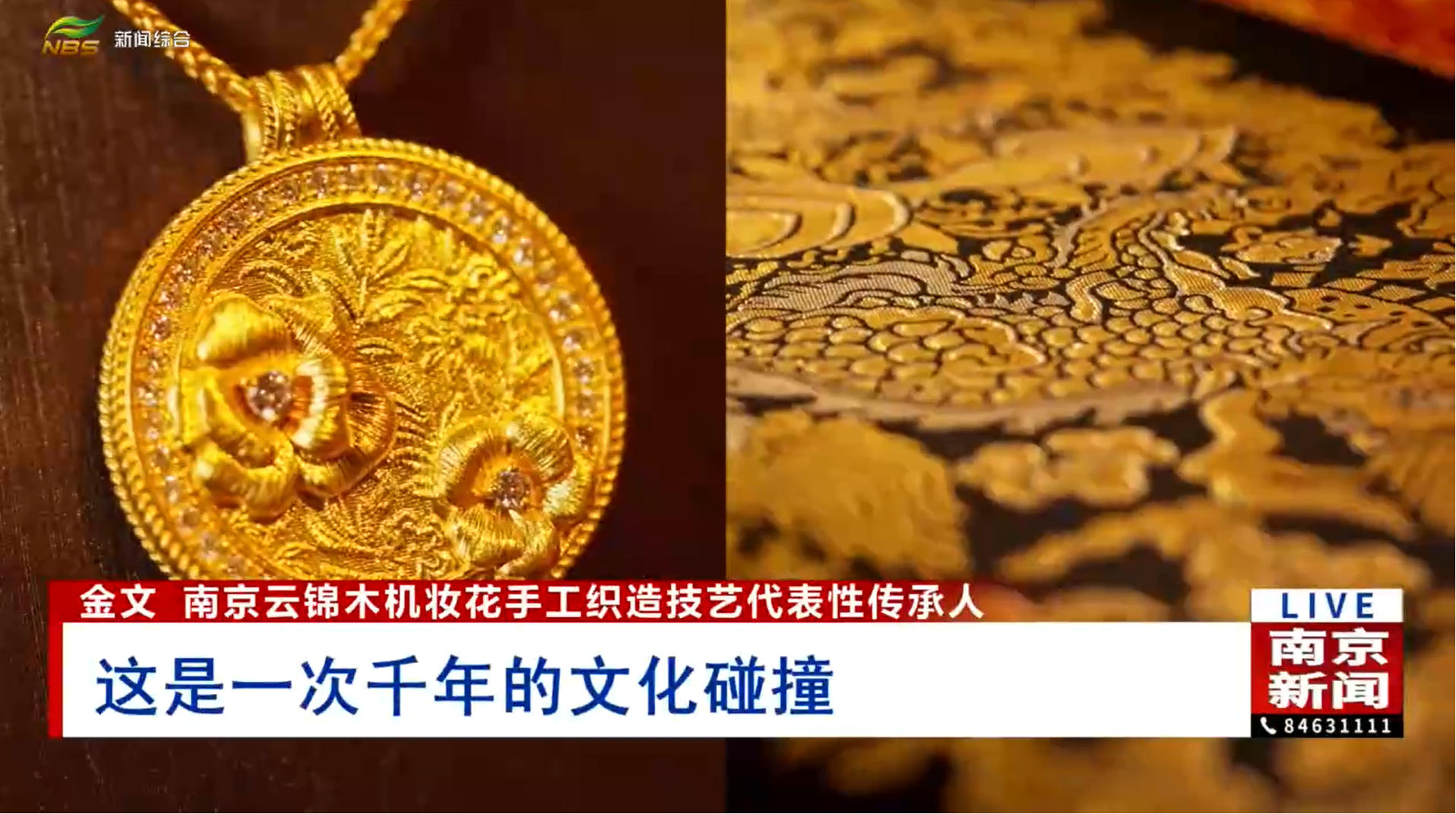 南京云锦木机妆花手工织造技艺代表性传承人金文表示:“南京云锦和古法黄金实际上是同根同源,我们作为传承人最大的责任就是传承,把云锦的纹样“移植”到黄金的物体上,它又有金碧辉煌的效果,又带有云锦的纹样,这是一次千年的文化碰撞。我们希望云锦在更多的层面去展现它的魅力,融入人民美好生活。”