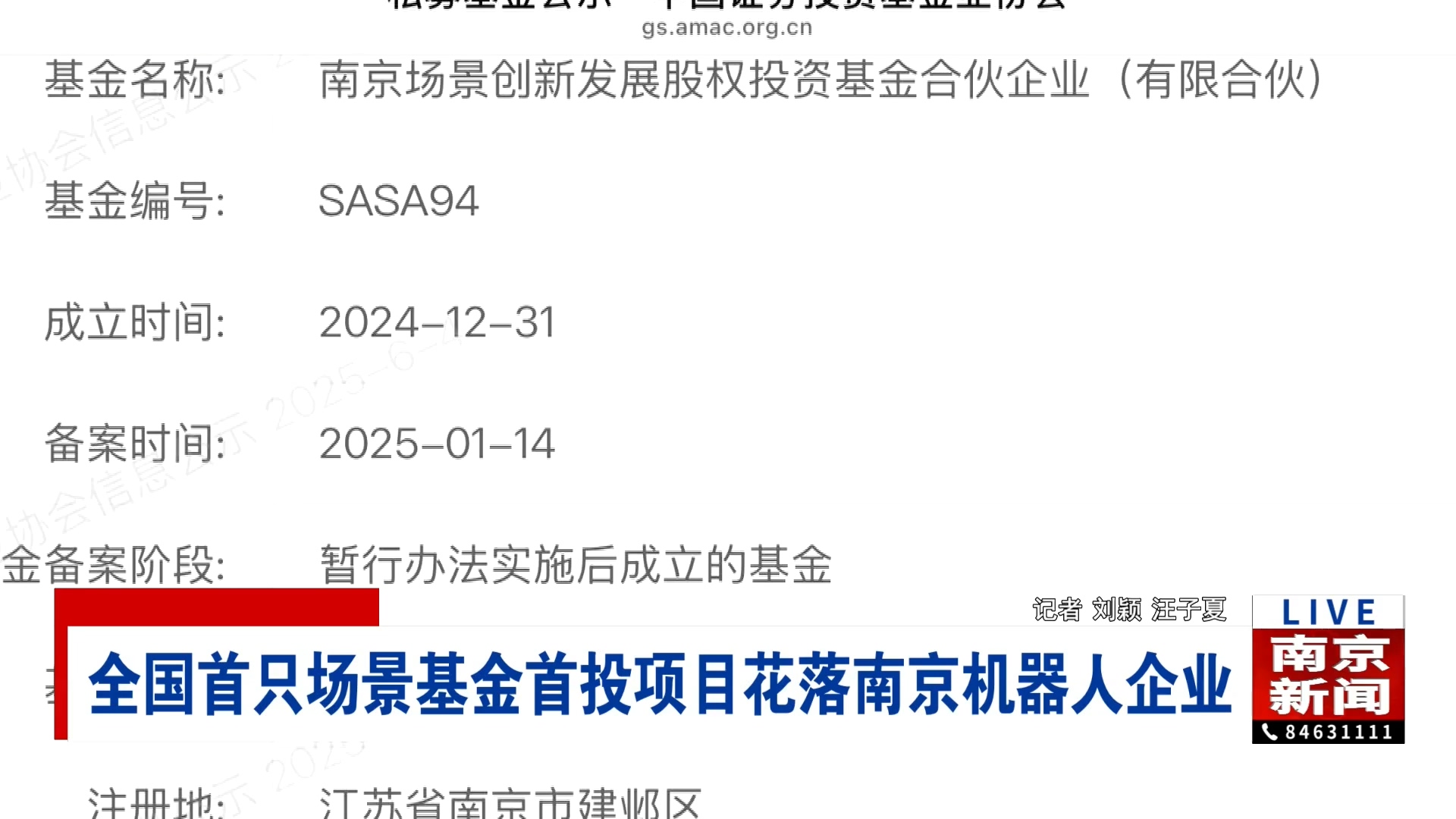 今年1月,南京场景基金在中国证券投资基金业协会完成备案,成为南京市“4+N”产业基金集群中的首批落地基金,也是全国首只重点支持场景创新发展的专项产业直投基金,首期规模2亿元。