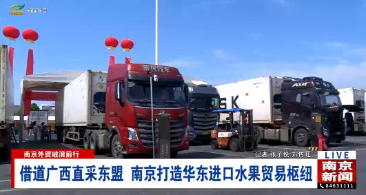 广西是东盟水果进入中国的“门户枢纽”。今年以来,南京市持续深化与中新南宁国际物流园合作,积极支持苏豪集团、众彩市场等龙头企业对接中国-东盟特色商品汇聚中心、广西进口水果交易中心,借助广西这一通道直采东盟水果,全力助力南京市打造辐射华东地区的进口水果贸易枢纽。