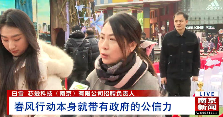 南京省心家护信息服务有限公司招聘专员王先生表示:“保洁员、护工、月嫂等岗位常年招聘,需求量较大。本次招聘计划招录约100人,涵盖多类服务岗位。”芯爱科技(南京)有限公司招聘负责人白雪则强调:“我们此次主要招聘生产类制造工程师、质保工程师及一线技能岗位。‘春风行动’依托政府公信力,为企业和求职者提供了可靠、温暖的对接平台。”求职者雍同学也表示:“现场氛围热烈,岗位选择丰富。我提前通过线上宣传筛选了目标企业,到场后直接对接,效率很高。”
