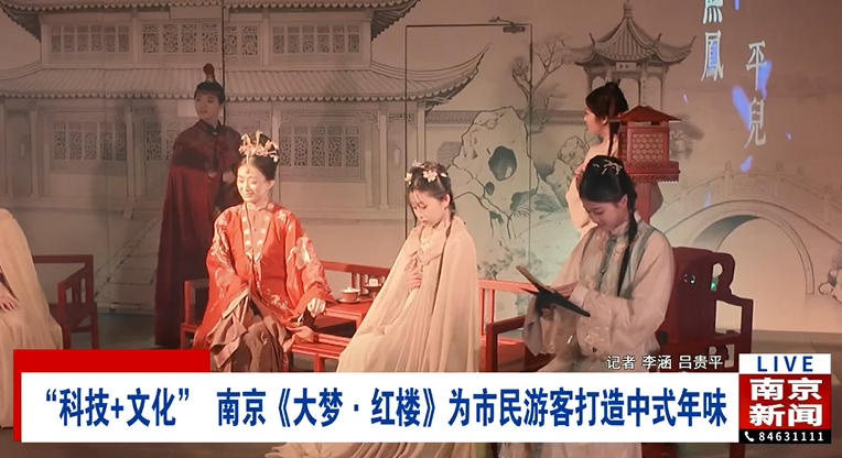 北京游客陆先生对此赞不绝口:“我觉得很好,现在也是AI比较盛行的时代,将其应用到现实当中,能让我们更多的人更好地去了解历史文化。”江苏文创文化发展有限公司副总经理李卓霖介绍道:“整个《大梦·红楼》在我们的设计和创意理念里面,借助了一些数字场景的创新,包括我们对于IP文化的活化,去体现金陵文化的特色和《大梦·红楼》文化的特色。”
