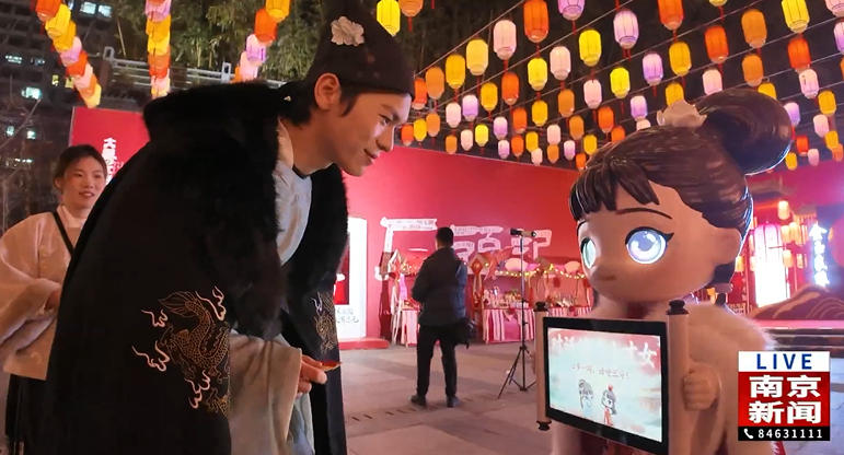 与此同时,《大梦·红楼》还在场外设置了NPC巡游等丰富多彩的活动,并带来了由江苏文创公司自主研发的文旅IP具身智能机器人——“AI黛玉”与“AI曹先生”。这些充满国潮风格的机器人,是依托公司自主训练并通过国家网信办备案的“长干”大模型,结合《红楼梦》专题高质量数据深度打造的“文化知识交互AI智能体”。