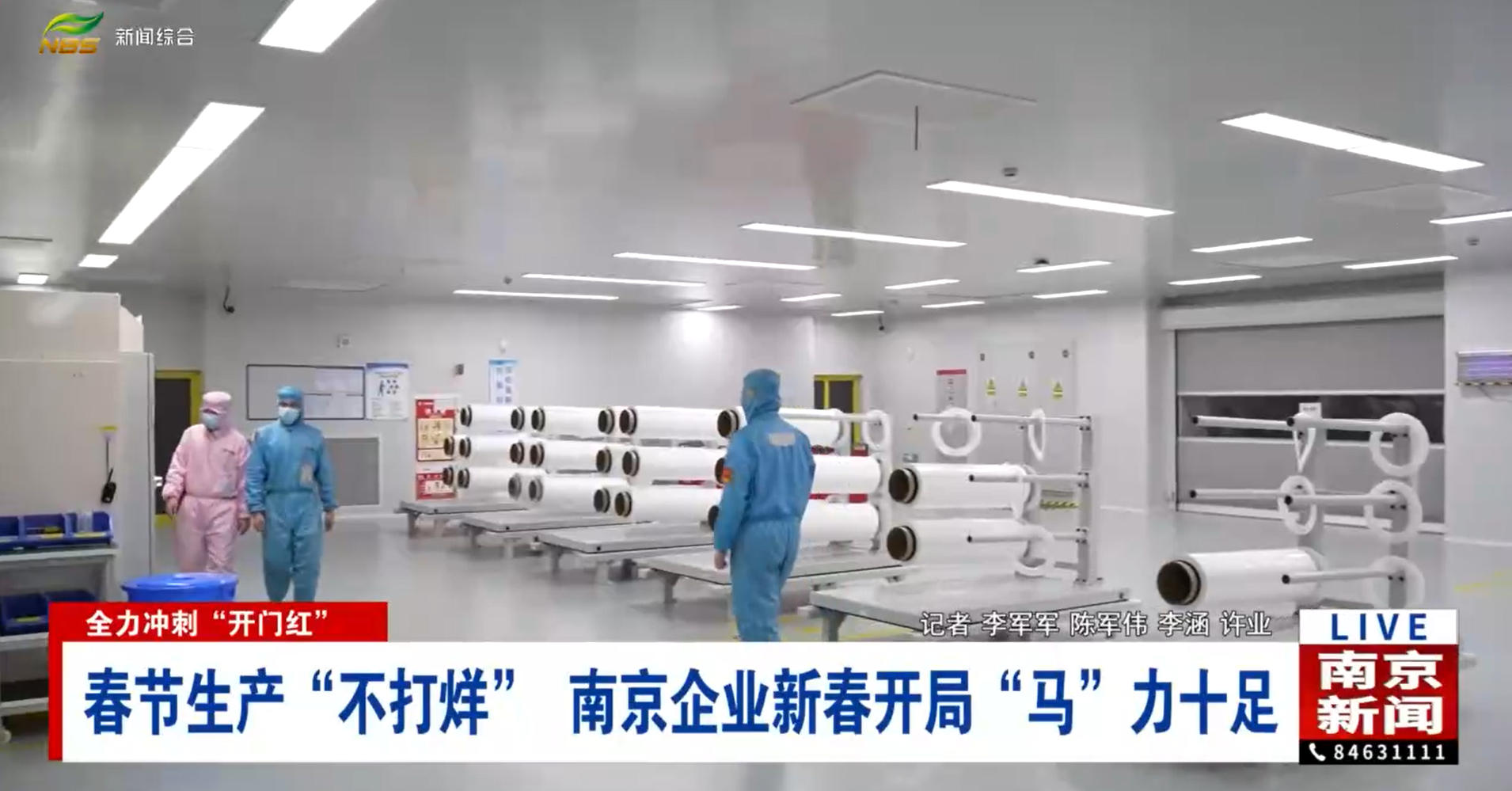 春节期间,位于滨江开发区的中材锂膜(南京)有限公司的生产车间内一片火热忙碌景象。该公司专业从事高性能锂电池隔膜的研发、生产、销售及技术服务,产品广泛应用于新能源汽车动力电池、储能电池、3C消费电池等领域。由于近期市场需求旺盛,订单量同比大幅增长,企业假期不停工,8条智能自动化产线满负荷运转,300余名员工错峰值守、轮班作业,确保高效稳定生产。记者在中材锂膜(南京)有限公司的生产车间看到,企业正在全力推进锂电池隔膜生产。据悉,隔膜材料对生产环境要求极高,所有工人均需身着无尘服作业。为满足市场需求、保障订单供应,春节期间,该企业工人依旧坚守岗位,紧张有序地开展生产工作。