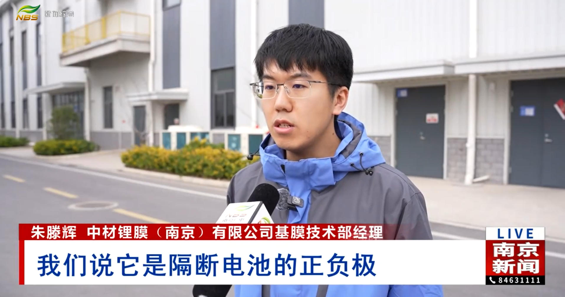 中材锂膜(南京)有限公司基膜技术部经理朱滕辉介绍,隔膜材料主要应用于新能源行业,“我们现在的一些电池材料,比方说新能源汽车里面的,我们说它是隔断电池的正负极,来进行控制锂离子的传输,确保电池的安全充放电。”