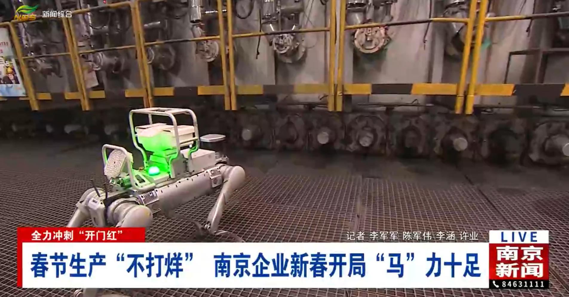 为了赶制一批批发往全球的订单,这个春节,南钢的生产线一直满负荷运转。四足机器人也加入了巡检队伍,为生产安全保驾护航。生产、质检、物流等各个环节紧密衔接、高效协同,全力冲刺一季度“开门红”。