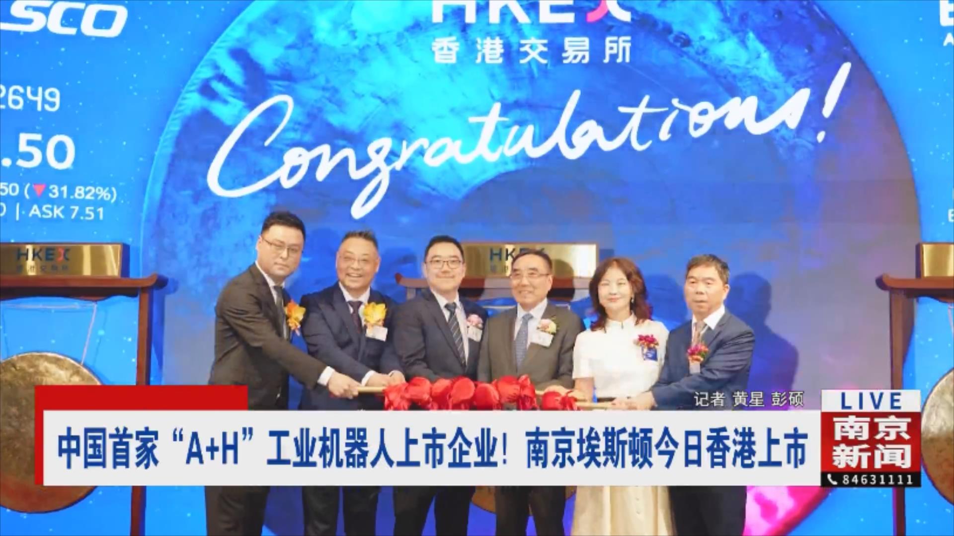 3月9日,南京埃斯顿自动化股份有限公司在香港联合交易所主板挂牌上市,成为国内工业机器人领域首家“A+H”上市企业。