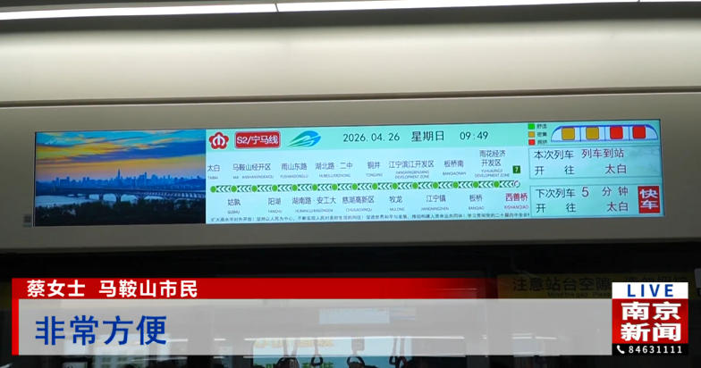 宁马线以其票价亲民、换乘便捷、通行高效的特点,大幅压缩了宁马两地的时空距离。据交通运输部门统计,宁马线4月25日全线客运量达14.79万人次。这条跨省轨道交通线路正以蓬勃的活力,为宁马两地的交流与合作注入新的动力,让双城生活更加美好。