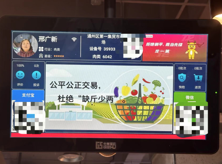 农贸市场的升级不仅停留在市场环境上,数字化智慧化升级,也让市民的幸福感不断提升。今年3月,通州第一集贸市场着手进行数字化智慧化升级,投入60万元,引进185台摊位显示屏、185台电子秤、6套液晶广告屏。5月底6月初,智慧化系统开始试运行,目前正在逐步调试。通州第一集贸市场管理负责人曹建华表示,该市场通过智慧溯源、智慧公示、智慧检测等方式保障了食品安全,还针对商户证照资质、投诉处理记录等方面,打造了标准化销售流程,农贸市场变得越来越“聪明”,百姓的“菜篮子”也拎得更放心。