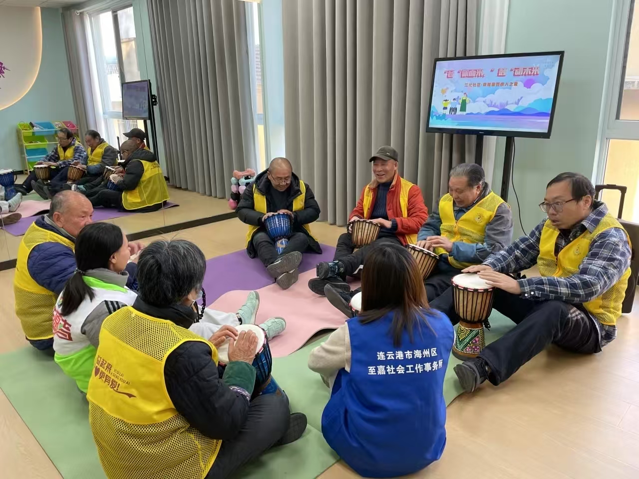 活动室之外,有的残障人士在工作室干活儿,有的正在老师的指导下做康复训练,一切显得温暖而有序。生命也许有缺憾,但这里带给他们友爱与温暖、欢笑与进步。“大家长”江化社区党委书记刘人瑜看着、笑着,眼里满是欣慰。