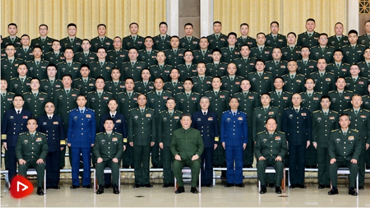 1月24日,中共中央总书记、国家主席、中央军委主席习近平到北部战区机关视察慰问,通过视频看望基层官兵,检查部队战备值班和执行任务情况,代表党中央和中央军委,向全体人民解放军指战员、武警部队官兵、军队文职人员、预备役人员和民兵致以诚挚问候和新春祝福。这是习近平同北部战区官兵代表合影留念。