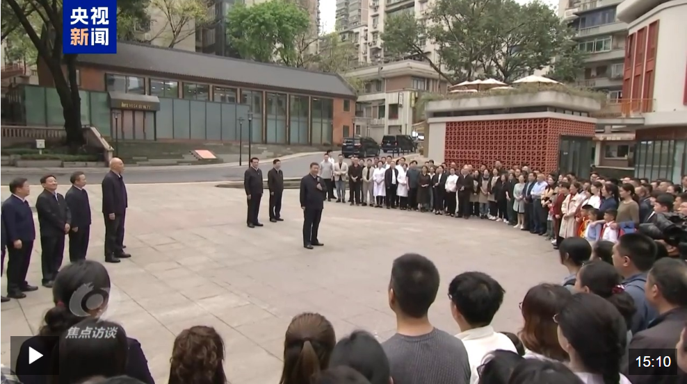 2024年4月22日,习近平总书记来到重庆考察,走进九龙坡区谢家湾街道民主村社区,了解当地实施城市更新和保障改善民生等情况。看到社区焕然一新、井然有序,习近平亲切地对在场的社区居民说:“中国式现代化,民生为大。”陈阿姨对当时的场景还记忆犹新。