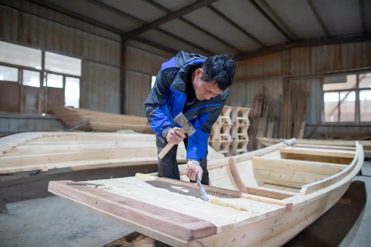 在他的带动下,镇里的木船厂纷纷开启互联网卖船模式。随着订单越来越多,一些企业越做越大,竹泓镇因势利导申报了木船文化产业园区,首批就有十余家企业入驻。