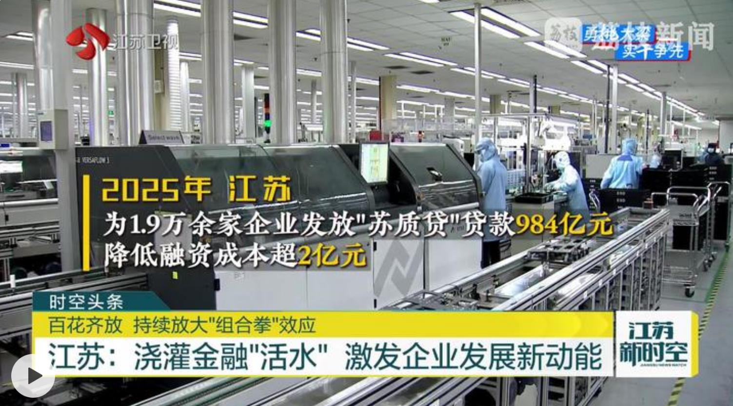 与博斯威尔一样,众多中小微企业的核心资产是知识产权、信用荣誉等无形资产,因抵押担保不足,长期面临融资难、融资贵的问题。“苏质贷”瞄准这一痛点,将反映企业质量水平的无形资产转化为企业获得授信的有形资产。2025年,江苏共为1.9万余家企业发放“苏质贷”贷款984亿元,九成以上为小微企业,降低融资成本超2亿元。