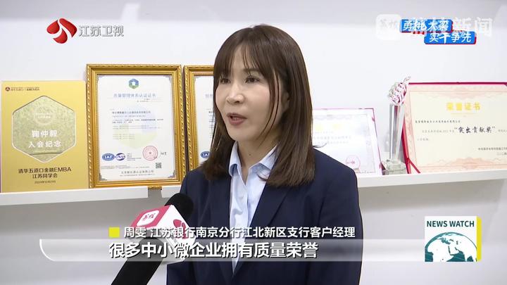 江苏银行南京分行江北新区支行客户经理周雯说:“很多中小微企业拥有质量荣誉、质量标准制定、质量认证这些信誉,市场监管部门建立并动态更新‘苏质贷’企业库。我们银行基于名录进行精准对接,通过引入质量数据为企业绘制精准画像,证明了他们经营的稳定性和信誉度,所以我们在放款时觉得风险相对可控。”