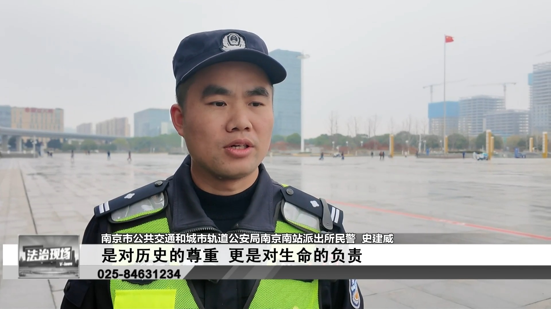 南京南站联勤联动执勤警力举行默哀仪式