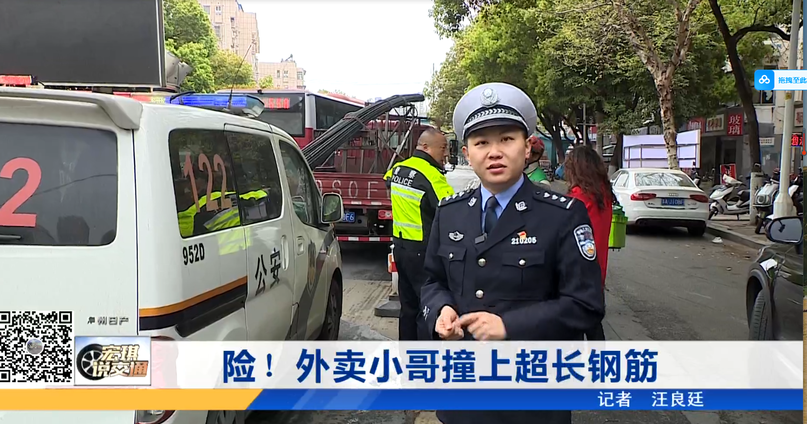 险!外卖小哥撞上超长钢筋